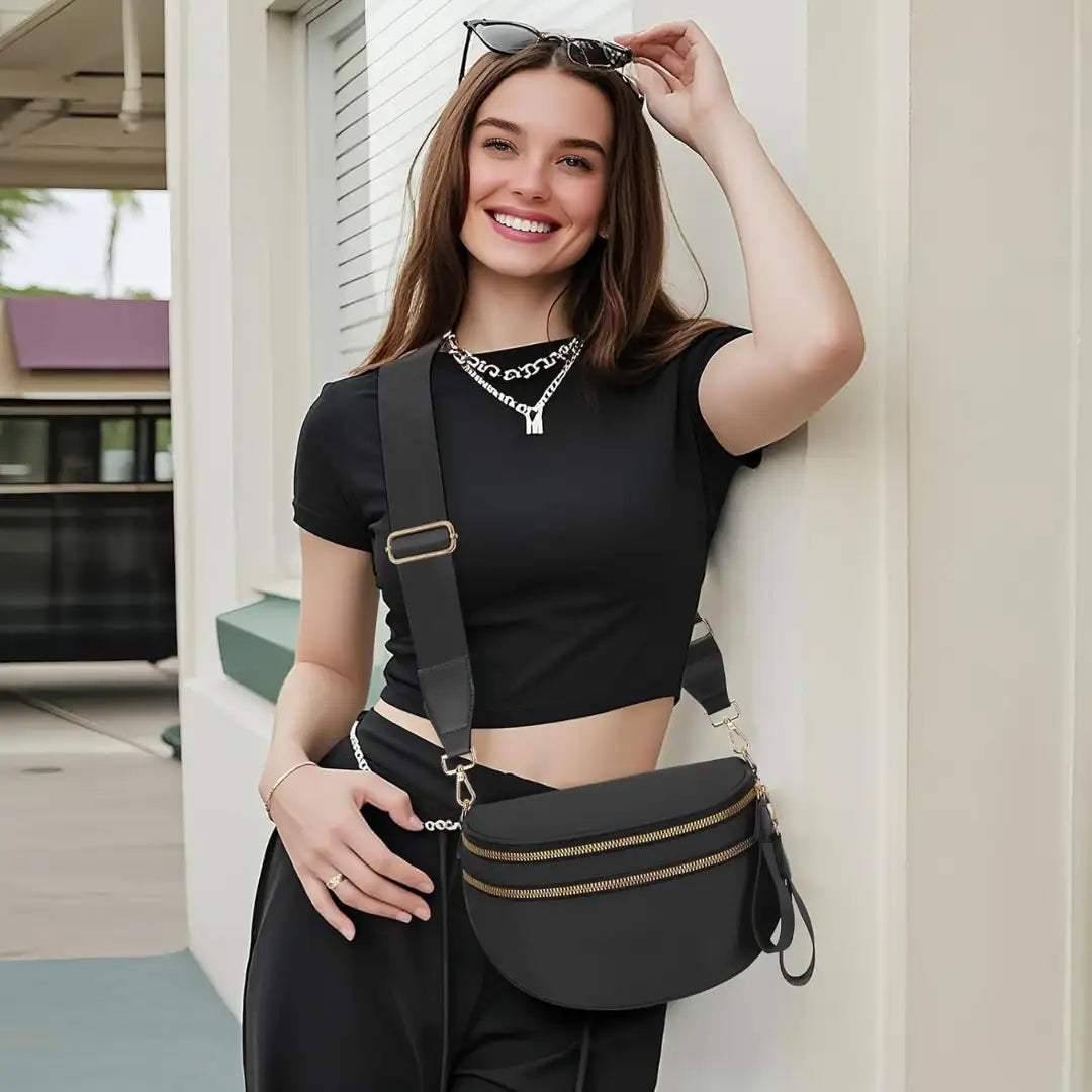Ne vous laissez pas tromper par sa taille compacte : ce sac offre une capacité de rangement surprenante. Grâce à ses deux poches avant, sa poche arrière sécurisée et son grand compartiment principal, vous pouvez facilement organiser vos indispensables — téléphone, clés, portefeuille, maquillage ou encore bouteille d’eau. Conçu pour les esprits pratiques et actifs, il permet de tout garder à portée de main sans compromis sur le style.