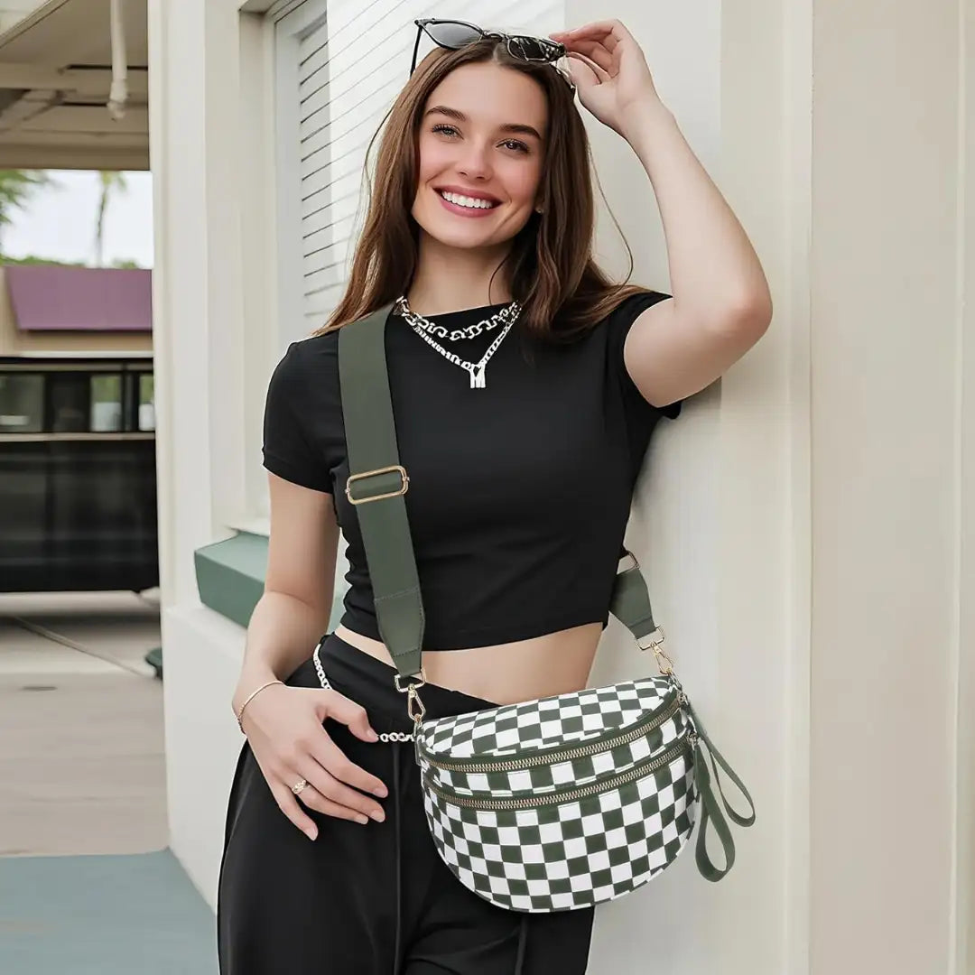 Alliant modernité et confort, le Sac Banane redéfinit l’accessoire indispensable du quotidien. Son design à carreaux chic et intemporel s’adapte à toutes les occasions : balade urbaine, sortie entre amis ou escapade improvisée. Léger mais robuste, il se porte aussi bien à la taille qu’en bandoulière, selon vos envies. Son allure moderne et affirmée apporte une touche d’élégance à toutes vos tenues, tout en restant fonctionnel et agréable à porter.